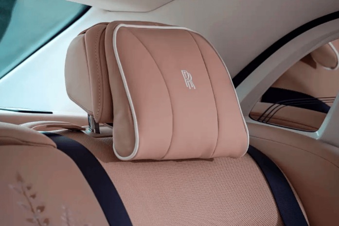 后排座椅间的皮革“瀑布”饰面刺绣作品延续了花卉主题,与“艺境藏珍”画廊设计中的植物细节前后呼应,通过约7万针刺绣而成。扬声器网罩采用玫瑰金色,微妙地衬托了刺绣色调。