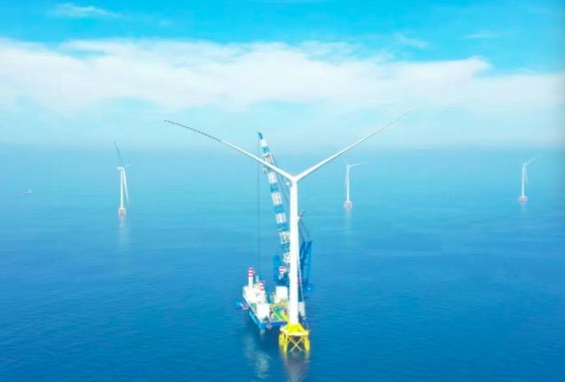 项目总装机容量504兆瓦,安装42台单机容量12兆瓦的风力发电机组,配套建设1座220千伏海上升压站、1座陆上集控中心、220千伏海底电缆输电线路及500千伏送出线路。